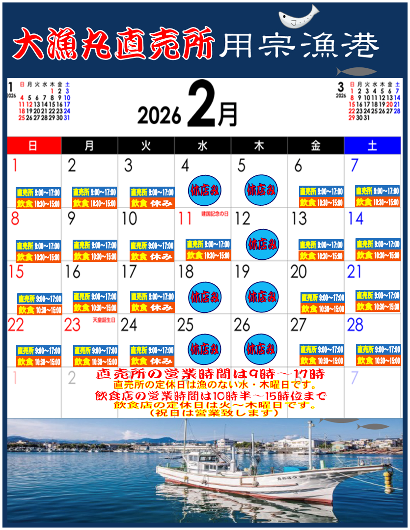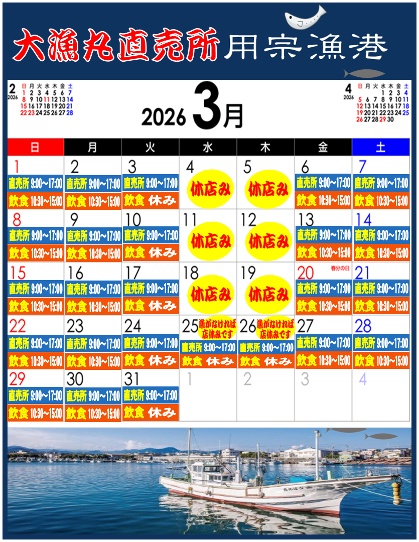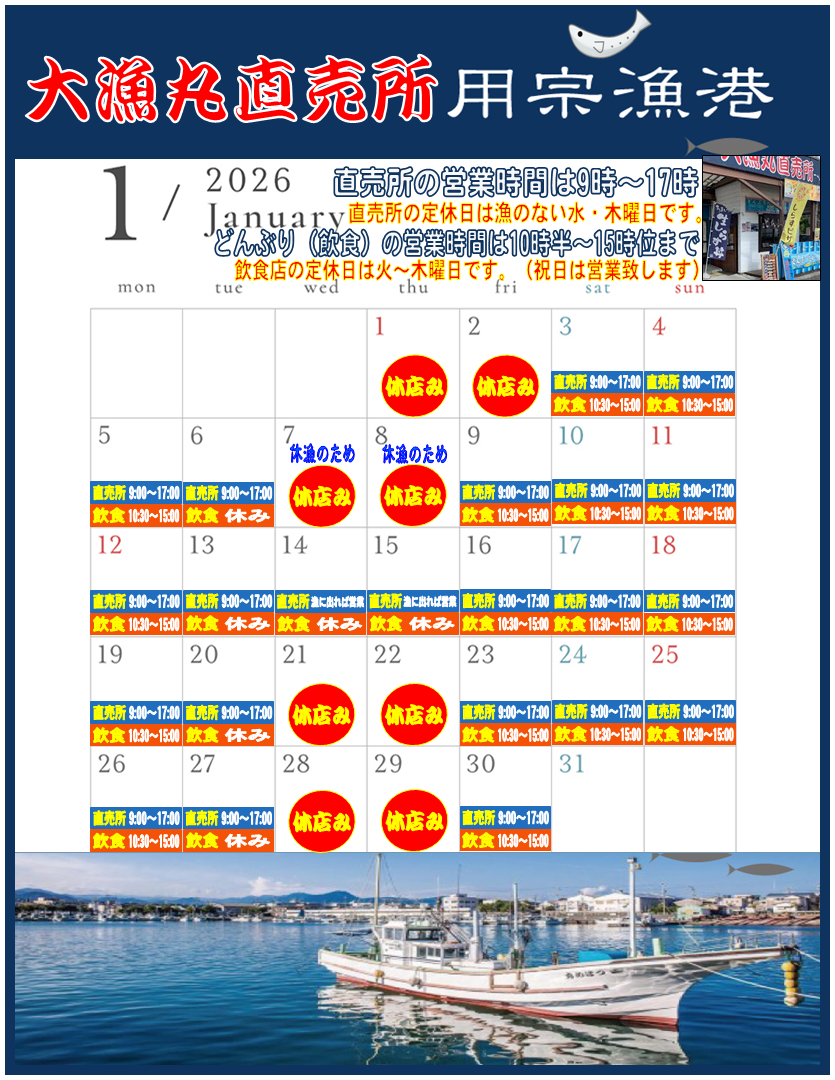 定休日 :水曜・木曜で、しらす漁がない日